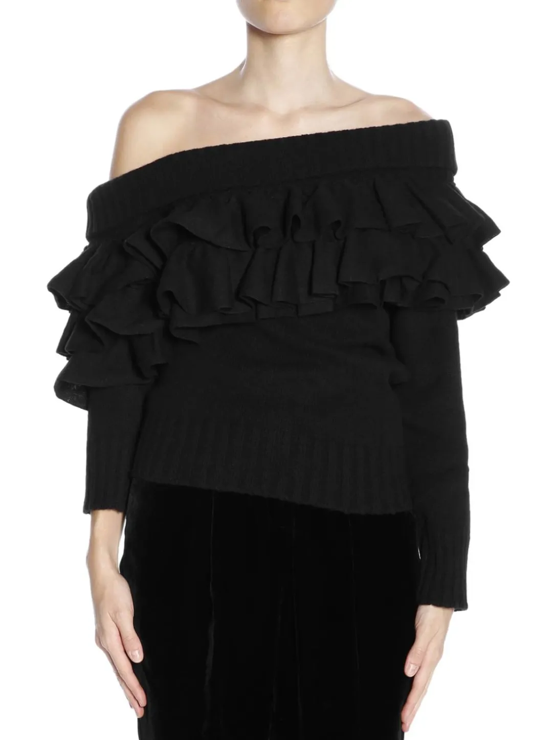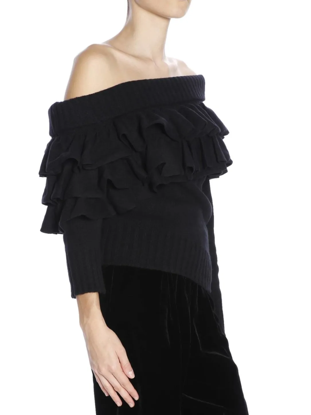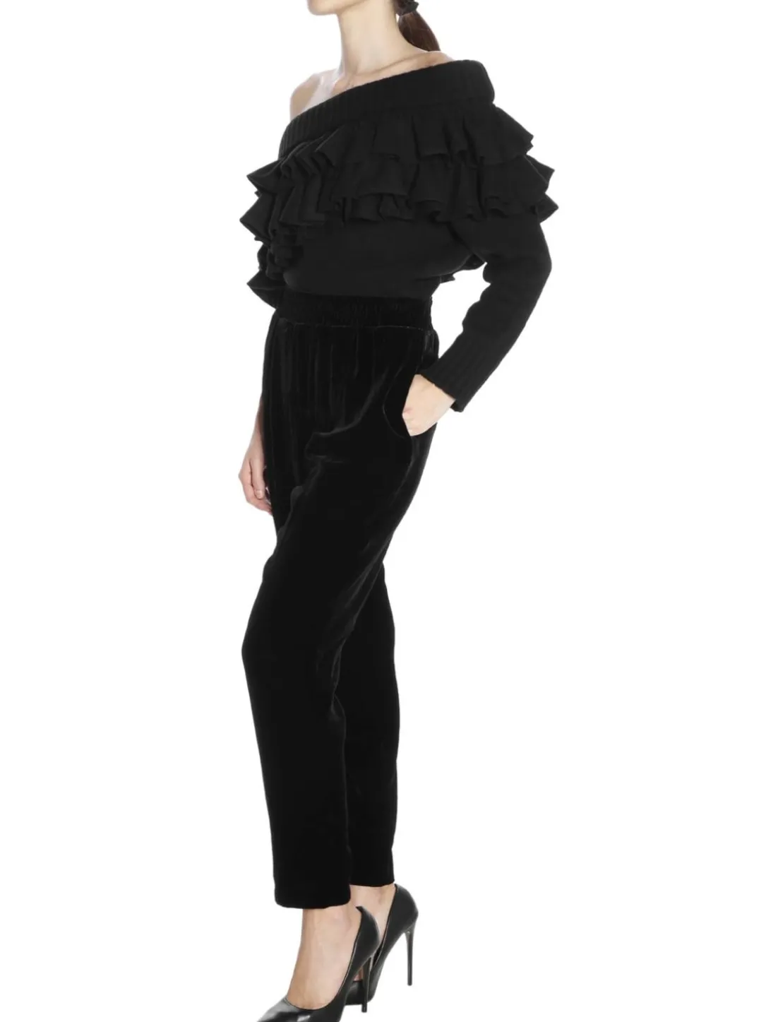 Manica lunga asimmetrico con rouche misto cachemire